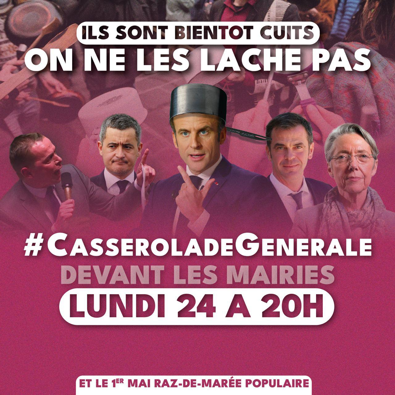 On ne les lâchera pas : le lundi 24 avril à 20h, nous appelons à une nouvelle casserolade générale devant les mairies et dans les rues.