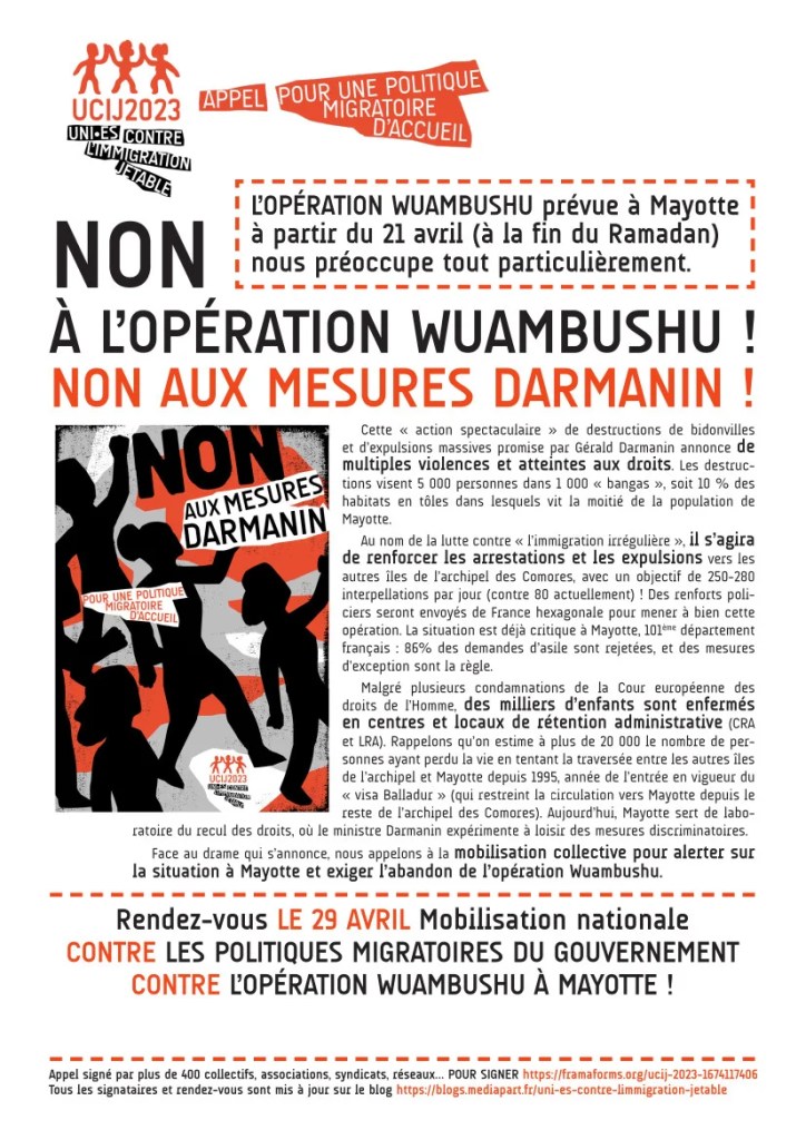 L’opération Wuambushu prévue à Mayotte à partir du 21 avril (à la fin du Ramadan) nous préoccupe tout particulièrement.