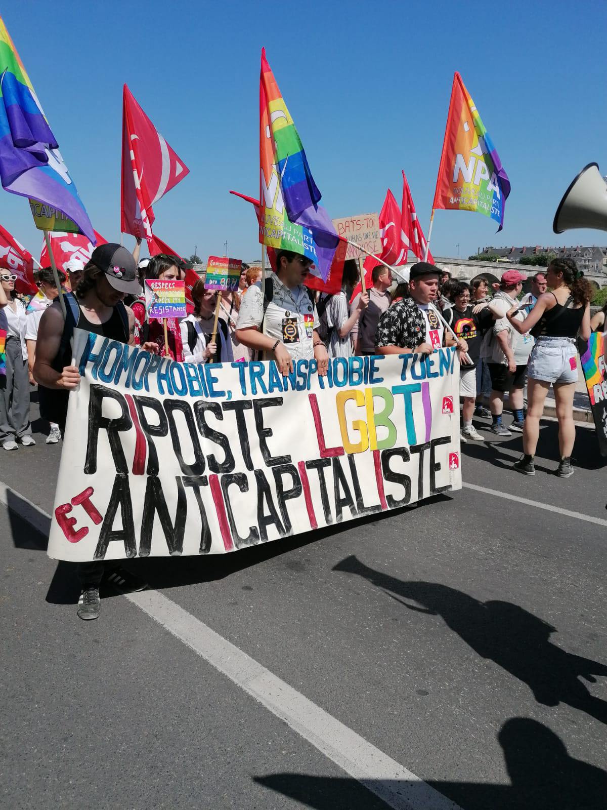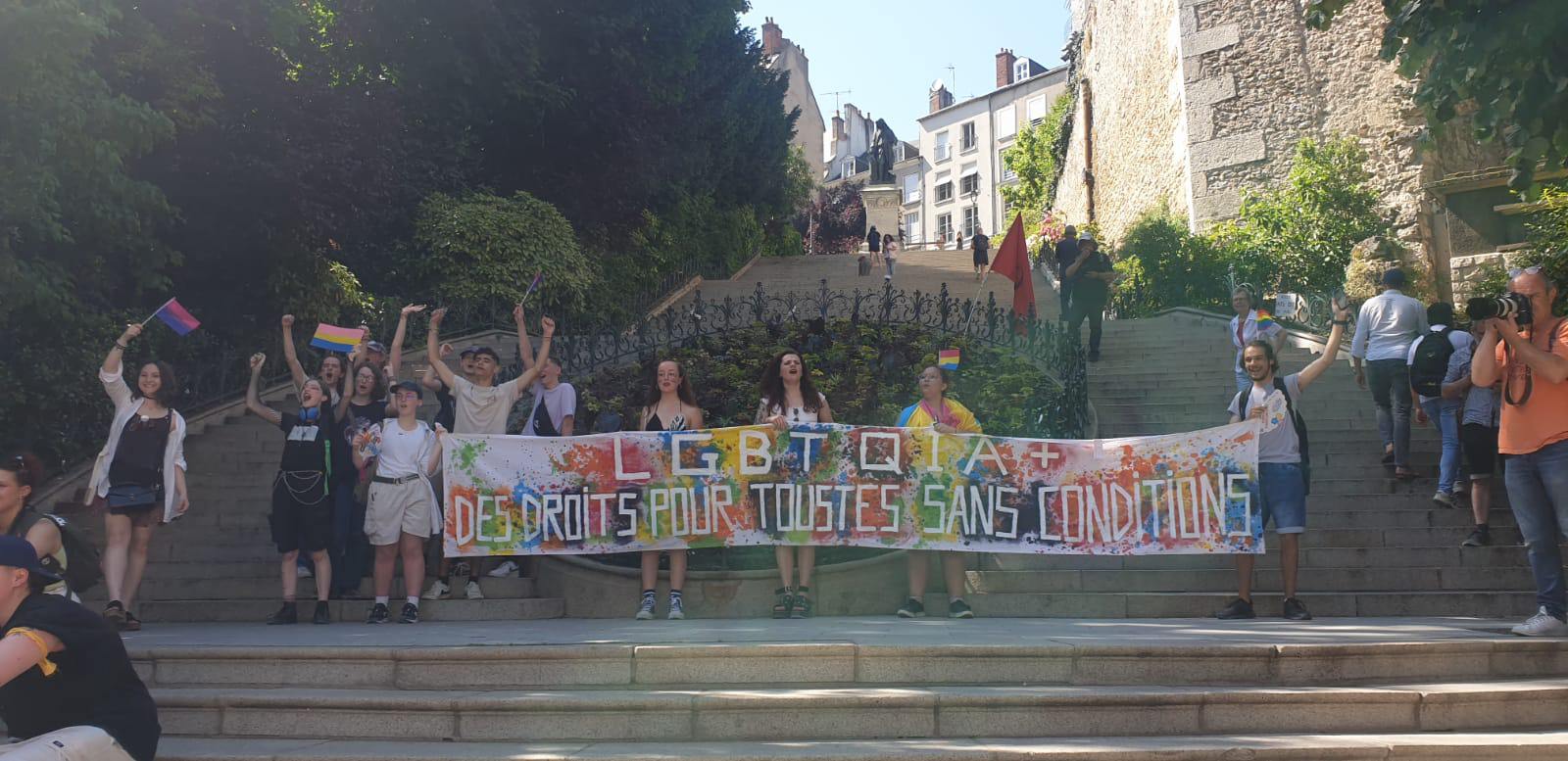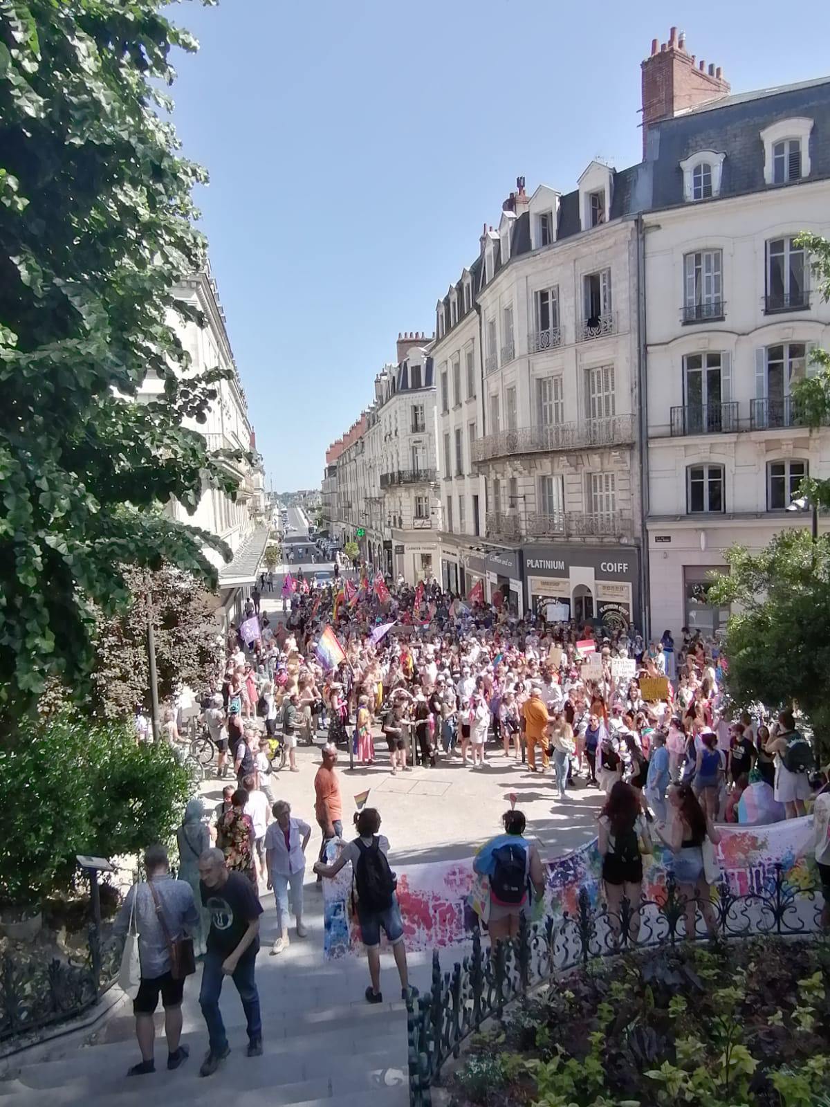 Habitant près d’Orléans, iel est venu soutenir la première marche des fiertés blésoise, à l’image des Centres LGBTI du Loiret et de Tours, dont l’attaque à la bouteille explosive le 22 mai dernier est dans tous les esprits. « Tant que des gens meurent encore à cause de leur sexualité ou que des centres LGBTI sont caillassés, on continuera », assène Laure, une participante, qui avec Aragon rappelle que « rien n’est jamais acquis ».