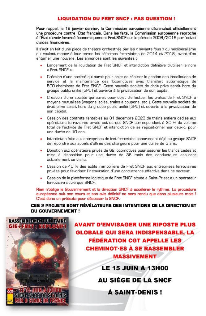 La fédération SUD-Rail condamne cette décision et ses conséquences mortifères sur le report modal et l’emploi ; ces deux éléments ayant déjà été durement touchés par deux décennies de néolibéralisme dans le transport de marchandises. Depuis l’ouverture à la concurrence effective de 2006, la part modale du ferroviaire de marchandises a été divisée par 2 et Fret SNCF a vu ses effectifs divisés par 3.