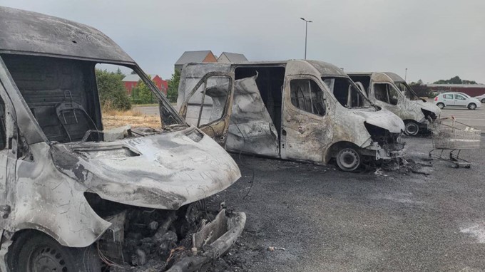 De nombreux véhicules ont été incendiés sur le parking du Super U de Châlette-sur-Loing.