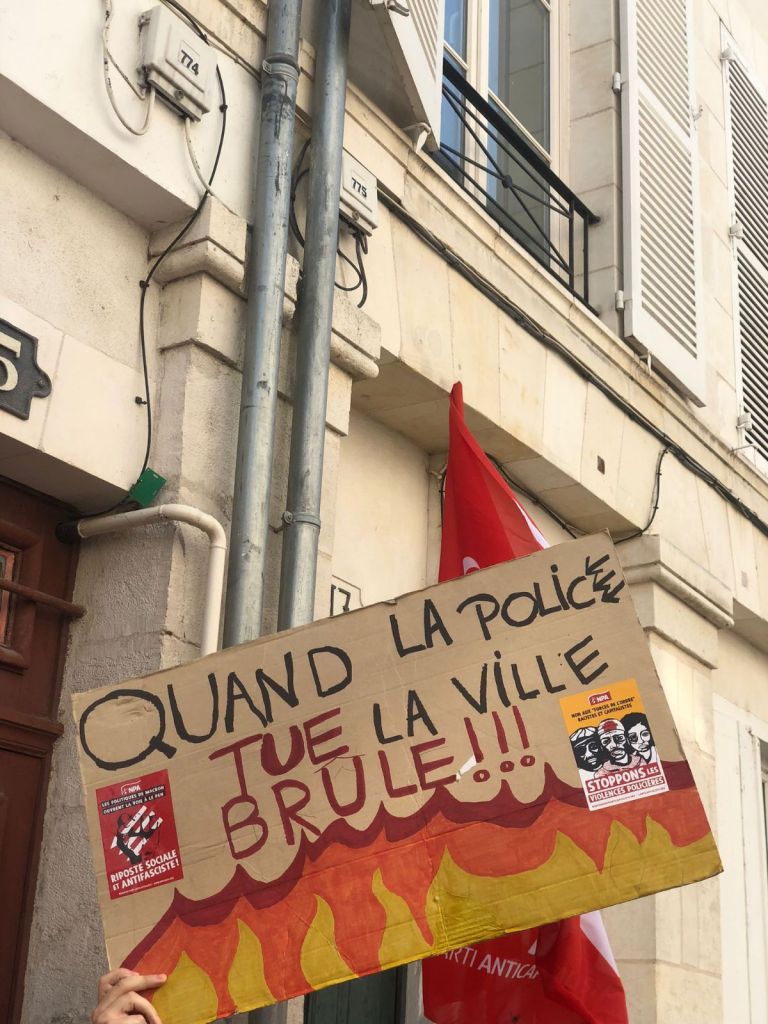 Le commissariat a ainsi fait l’objet de tirs de mortiers, de même que les forces de police et de gendarmerie venues en renfort. Les forces de l’ordre ont aussi été abondamment caillassées par des groupes d’individus masqués. Des voitures ont été incendiées, au moins huit dans l’agglomération, de même que des poubelles.
