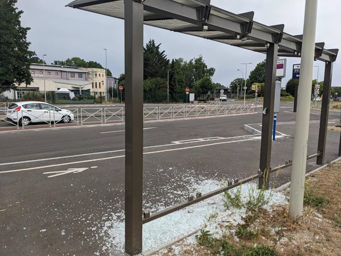 Des abribus ont été cassés devant le lycée Durzy de Villemandeur. © S. R.
