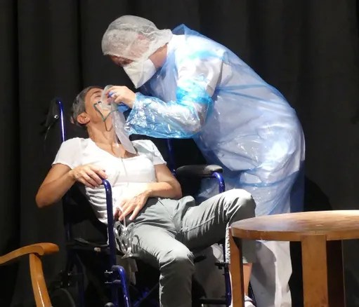 Ce spectacle écrit et joué par huit aides-soignantes issues de l’hôpital d’Annonay (Ardèche) est mis en scène par Christine Liétot. « Elles ont écrit à partir de ce qu’elles ont vécu dans leur propre chair, indique l’artiste. Elles expliquent pourquoi elles ont pris cette décision de ne pas se faire vacciner. Puis elles relatent, durant le confinement, l’horreur vécue dans les Ehpad par les résidents, cette inhumanité pour les personnes âgées, avec des scènes racontant les brimades. Puis, la suspension et tout ce qu’il y a autour, sans chômage, sans cotisation retraite, ainsi que la manière dont ça s’est passé avec certains collègues, amis, familles… »