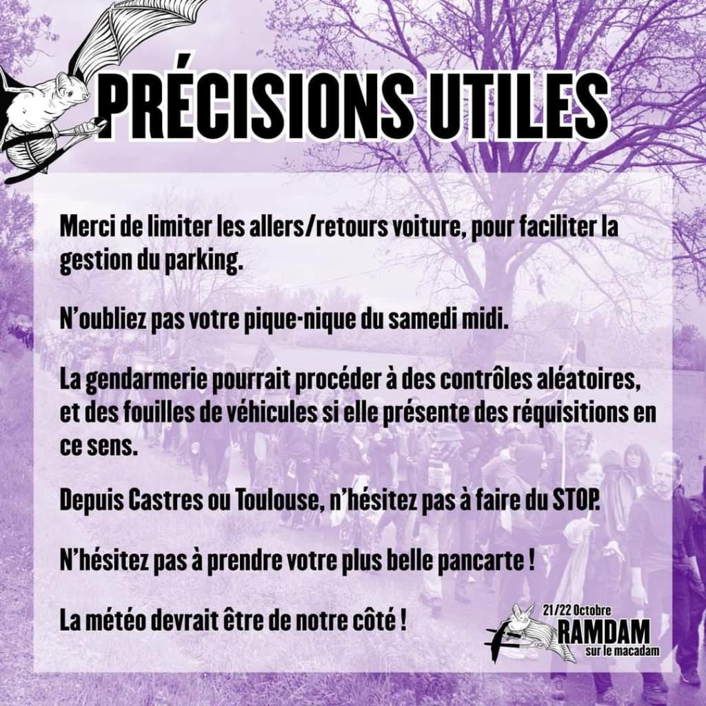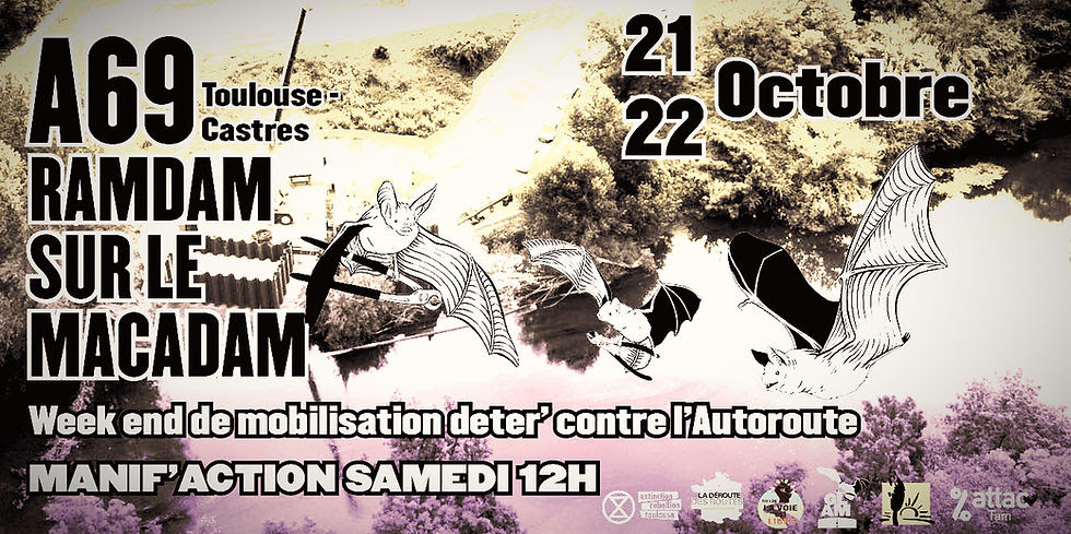 | Ramdam sur le Macadam ! Les 21 et 22 octobre est le prochain grand rendez-vous contre l’Autoroute Toulouse-Castres (A69). Le NPA 31 appelle à participer massivement à ces deux jours de mobilisations contre ce projet écocide et antisocial. Nous vous proposons d’organiser des covoiturages au départ de Toulouse. Si vous êtes intéressé·e·s vous pouvez nous contacter à contact@npa31.org Le ministre de l’écologie Clément Beaune, la présidente de région Carole Delga et Macron s’obstinent à maintenir un projet massivement rejeté. En réalité, ils servent les intérêts économiques de quelques-uns, au premier rang desquels Pierre Fabre (industrie cosmétique) et Atosca (la société qui a obtenu la concession de l’A69). L’objectif est de raccourcir le temps de trajet entre Castres et Toulouse. Pour cela, les portions actuelles à deux voies seront privatisées et intégrées à la future autoroute et le tarif pour un aller-retour s’élèvera à 17 euros ! L’actuelle nationale, privée de ses portions à deux voies et agrémentée de nombreux ronds-points pour rejoindre la future autoroute, verra son temps de trajet fortement augmenté. Les voyageurs·euses se retrouveront ainsi piégé·e·s entre un parcours plus long et un prix très élevé pour ce type de distance. Pourtant, des alternatives existent. Il serait possible d’aménager l’actuelle nationale pour développer les portions à deux voies. Les associations environnementales proposent elles un projet alternatif, Une Autre Voie, mieux intégré au territoire, permettant de fluidifier la circulation tout en préservant la planète et en améliorant le cadre de vie des populations avoisinant l’axe de déplacement. Plutôt que de prendre en compte l’avis de la population et la mobilisation massive qui se développe depuis quelques mois, Macron, Delga et Beaune ont fait de ce projet un étendard face à la montée des luttes environnementales. L’A69 est donc devenu un enjeu national dont la lutte victorieuse enfoncera un coin contre Macron et son monde capitaliste et écocide ! Alors les 21 et 22 octobre, c’est par milliers que nous nous retrouverons entre Castres et Toulouse pour une manif’action des débats et des concerts ! La manif partira à 12h30. Tout le programme peut-être consulté dur le site de La Voie est Libre. Le NPA organise des covoiturages au départ de Toulouse. Si vous êtes intéressé·e·s vous pouvez nous contacter : contact@npa31.org |