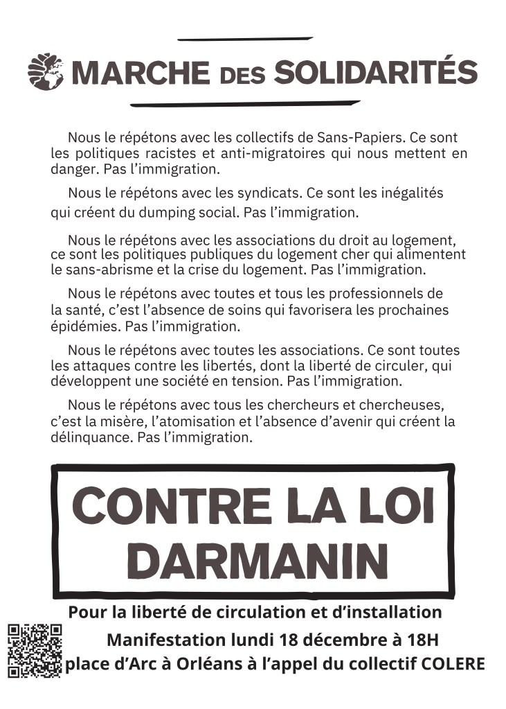 100 personnes mobiliséEs contre la Loi Darmanain-Macron-LR-RN à Orléans