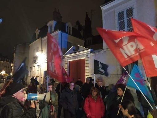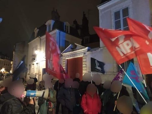 40 personnes lors d’un rassemblement éclair NPA, Solidaires, UCL, CAO devant le local des LR rue de la Bretonnerie à Orléans !