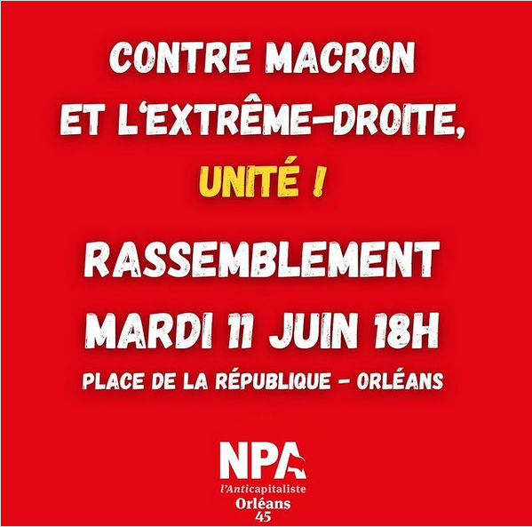 Rassemblement mardi 11 juin à 18 h, place de la République à Orléans