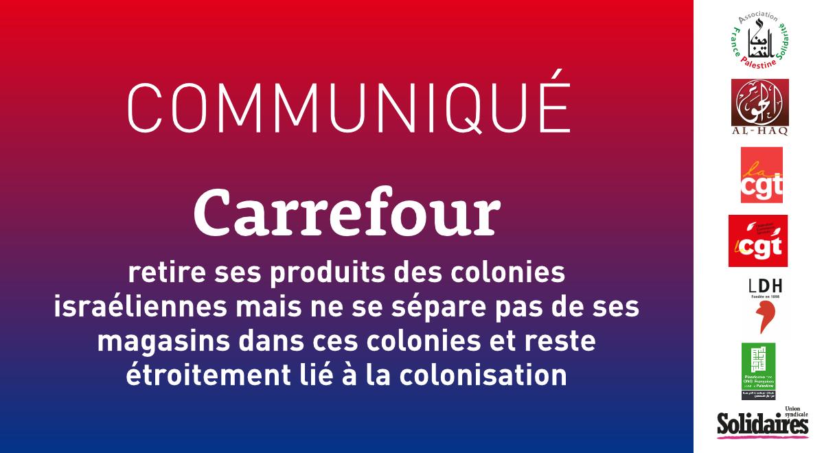 Ce retrait, dont nous nous félicitons, est le résultat des campagnes menées contre les liens de Carrefour avec la colonisation israélienne, notamment en France. Selon nos organisations, il s’agit cependant d’une mesure « cosmétique », visant à dissimuler que le groupe français reste bien présent dans les colonies. Les contrats de franchise avec les sociétés israéliennes franchisées Electra Consumer Products et Yenot Bitan demeurent effectifs, y compris pour les succursales dans les colonies, ce qui a notamment permis à Carrefour de décider ce retrait des produits de sa marque qui étaient proposés dans ces magasins. Une offre d’emploi a par ailleurs été publiée en janvier 2024 pour recruter du personnel dans une « succursale Carrefour » de la colonie de Maale Adumim, ce qui confirme la permanence des liens entre Carrefour et ses magasins franchisés dans les colonies.