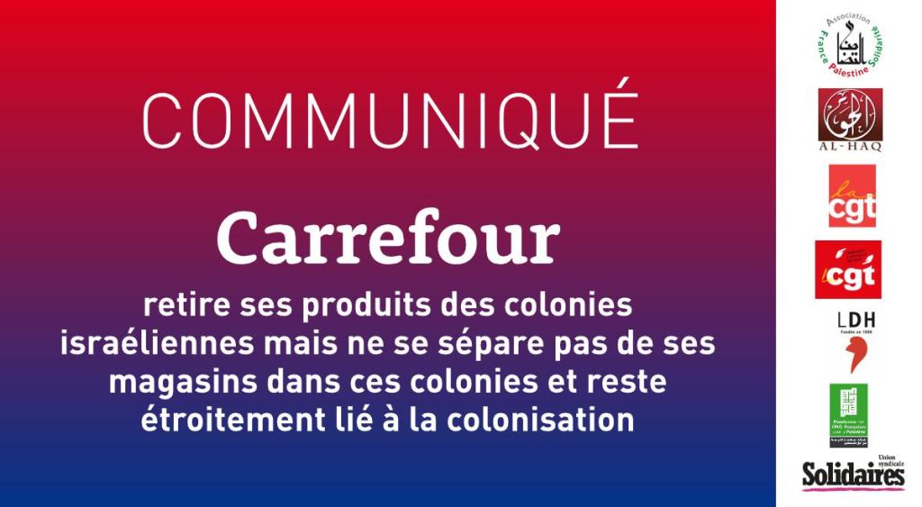 >> Lire la note d’actualité « Carrefour retire ses produits des colonies israéliennes, mais reste étroitement lié à la colonisation »Notes aux rédactions :