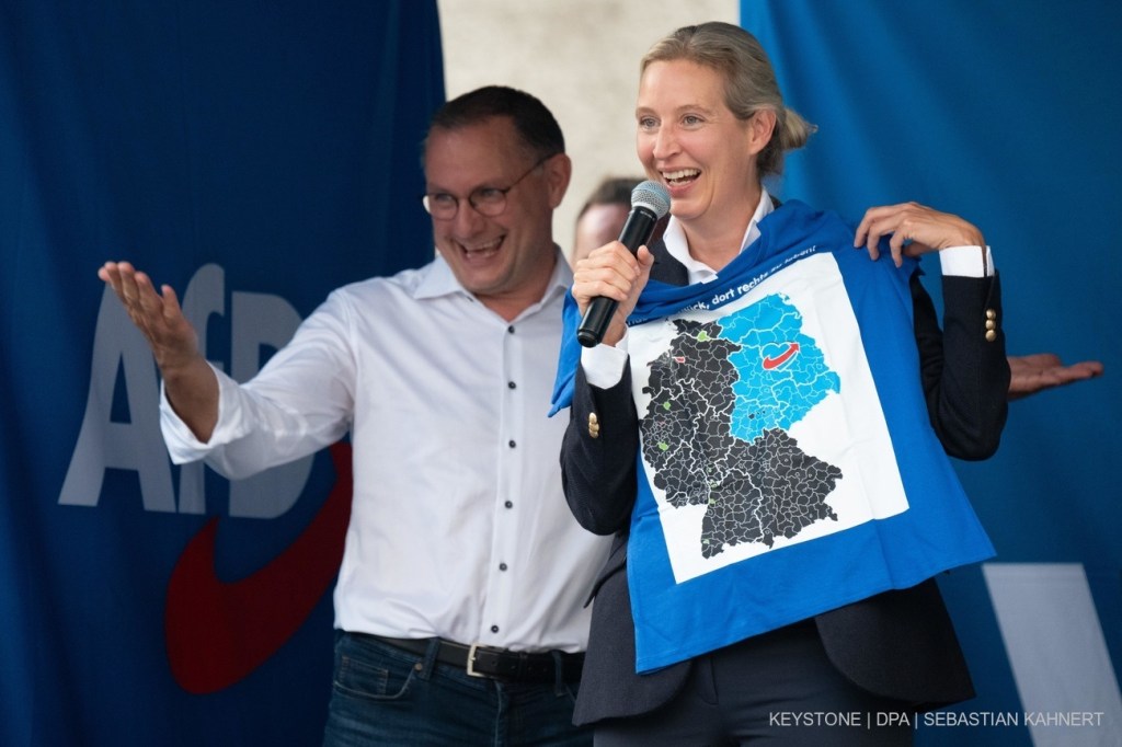 Début octobre, les élections régionales ont eu lieu en Hesse et en Bavière. Et quelle «surprise». En Hesse [capitale Wiesbaden], l’AfD arrive en deuxième position avec 18,4%, derrière la CDU. Et en Bavière, les voix pour l’AfD augmentent également de manière significative. Avec 14,6% (élections régionales 2018: 10,2%), elle devient le troisième parti au parlement régional bavarois, derrière la CSU (Christlich-Soziale Union in Bayern) et les Freie Wähler [association qui s’est transformée en parti en 2009]. Une Alice Weidel [députée au Bundestag depuis 2017, dirigeante de l’AfD, réside très souvent dans le canton suisse de Schwytz] rayonnante de joie constate devant les caméras de télévision le soir des élections: «L’AfD n’est plus un phénomène de l’Est».