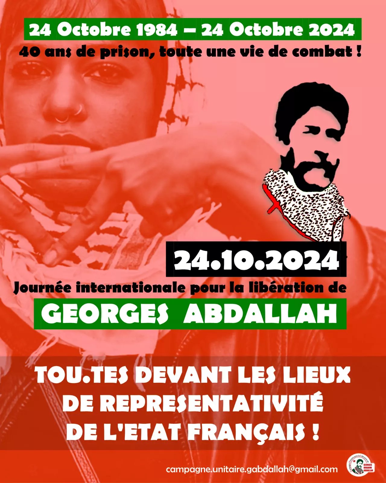 Georges Abdallah, le 24 octobre, tes camarades seront là ! Car c’est ensemble et seulement ensemble que nous vaincrons !