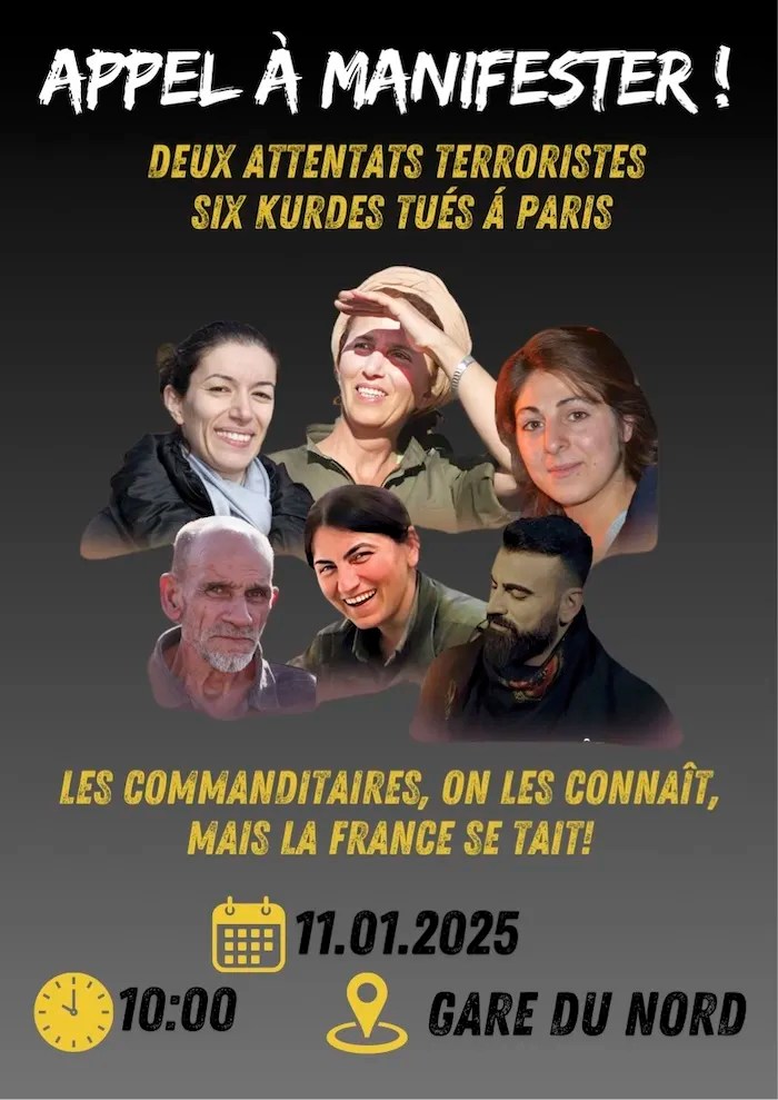 Plus d’info : https://kurdistan-au-feminin.fr/2025/01/09/il-y-a-douze-ans-on-assassinait-trois-militantes-kurdes-a-paris/