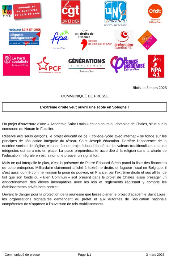 Un projet d’ouverture d’une « Académie Saint Louis » est en cours au domaine de Chalès, situé sur lacommune de Nouan-le-Fuzelier.