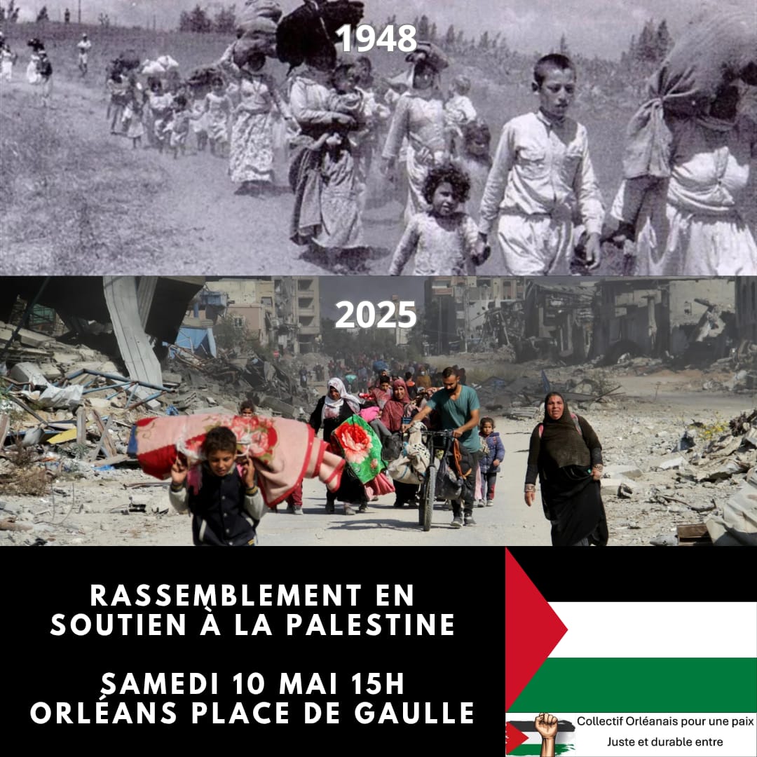 Le Collectif Orléanais pour une Paix juste et durable entre Palestiniens et Israéliens soutient ceux qui n’oublient pas la lutte des Palestiniens pour la reconquête de leurs droits, garantis par le droit international, et le premier d’entre eux, le droit à rester en vie, plus gravement menacé que jamais d’après l’ONU.