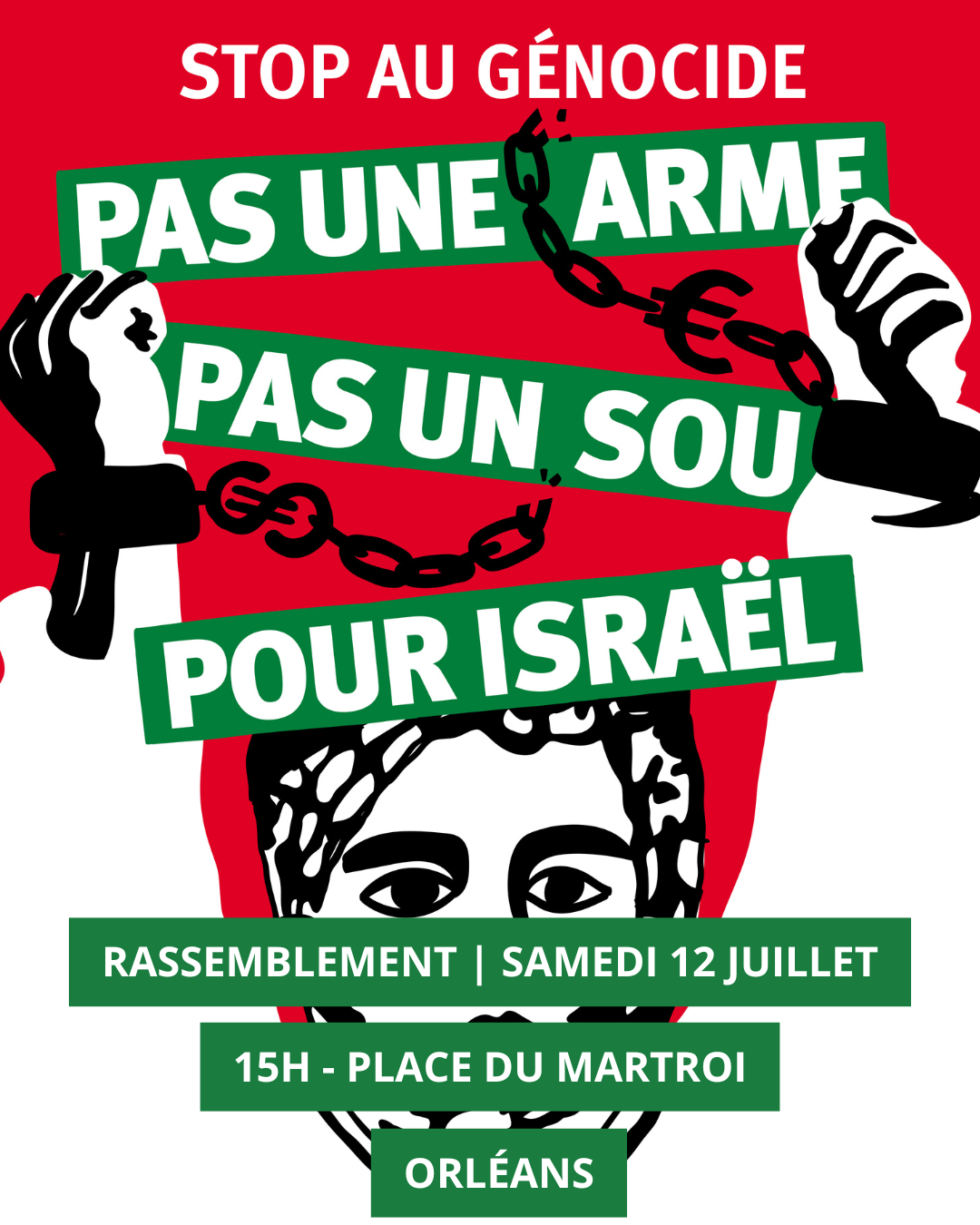 Samedi 12-07 15h00 Place de Gaulle à ORLEANS A l’appel du Collectif Nous reprendrons la mobilisation qui a démarré en France (mais venue de Hollande entre autre) : « Les lignes rouges ont depuis longtemps été franchies à Gaza ! »
