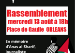 GAZA-ORLEANS Rassemblement samedi 09 août à 15h place de Gaulle !