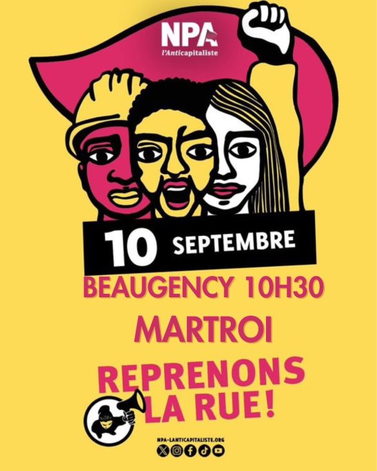 Face à une telle crise politique, à une telle accélération de la situation, le signal doit être donné que c’est le moment d’y aller, toutes et tous ensemble ! Le mouvement va s’inscrire dans la durée. Nous devons donc construire les cadres d’auto-organisation : sur nos facs, sur nos lieux de travail, dans nos quartiers, nous constituons les AG de celles et ceux qui luttent et se mettent en grève. Sans tomber dans la substitution : c’est bien sûr aux grévistes de décider des suites de leur grève. Enfin, nous devons donner un horizon politique à la mobilisation. Après Bayrou, Macron doit tomber. Mais au-delà, le NPA portera la nécessité d’en finir avec la 5e République et d’en appeler à une Constituante. La base pour cela, ce sera bien sûr les organes d’auto-organisation qui auront émergé de la mobilisation.