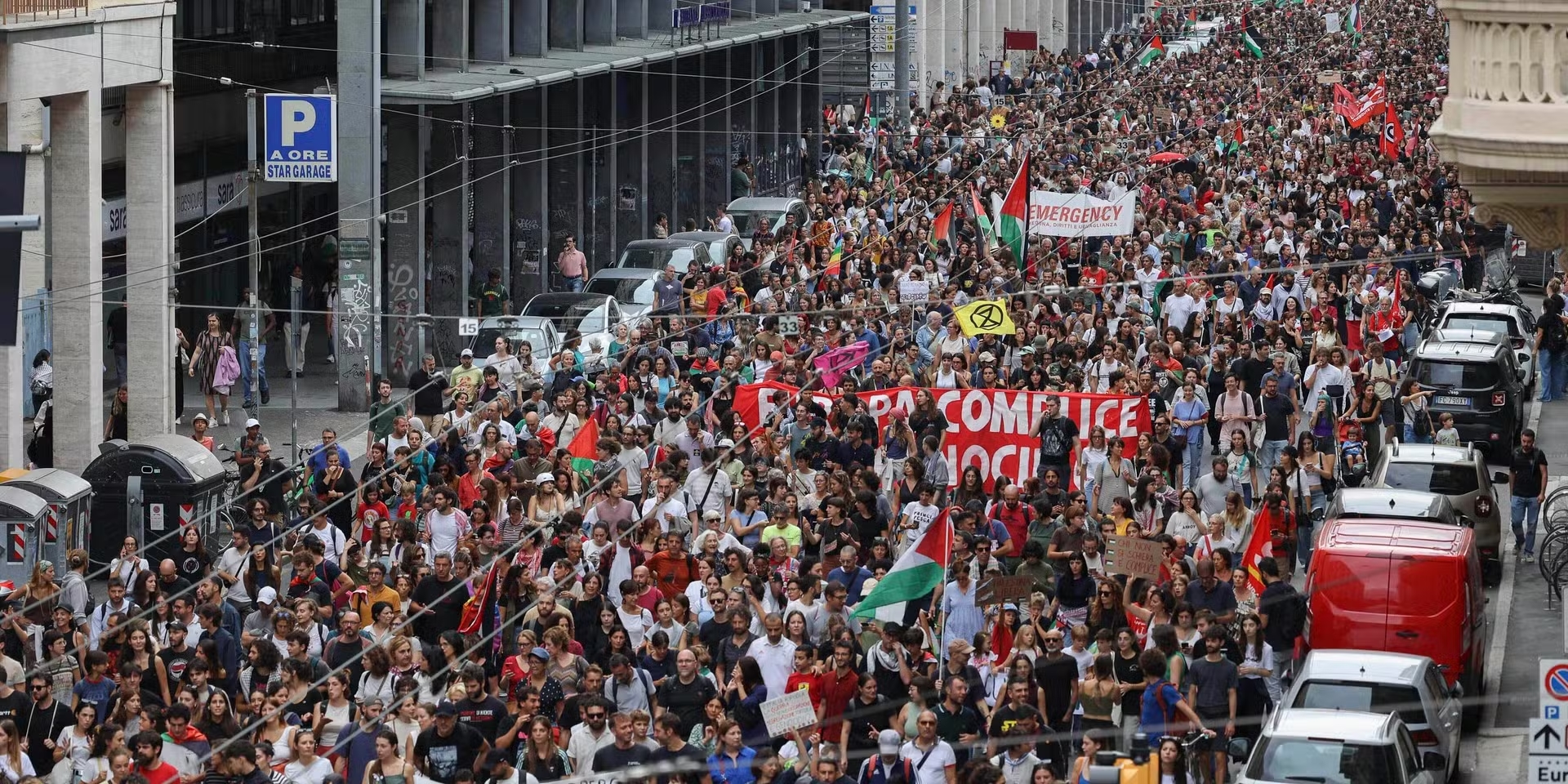 Ce 22 septembre restera mémorable pour la très vaste participation aux manifestations dans toutes les villes italiennes en soutien au peuple Palestinien et à la Sumud Flottille en navigation pour amener nourriture et médicaments à Gaza. C’est depuis le début du génocide à Gaza que dans toute l’Italie a monté sans cesse la mobilisation contre ce premier holocauste du XXIe siècle