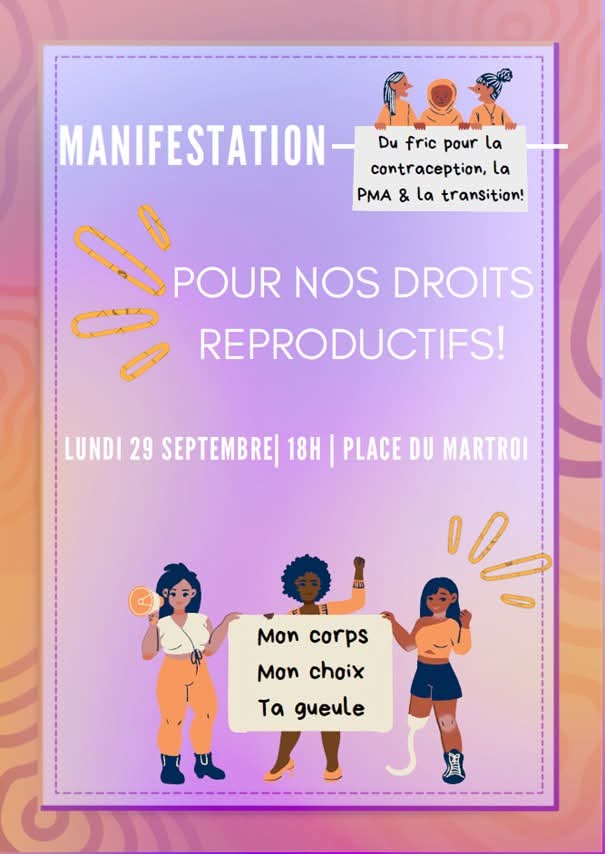 MANIFESTATION pour la défense du droit à l’avortement et de tous les droits reproductifs ! Lundi 29 septembre 2025 – 18h – Place du Martroi à Orléans !