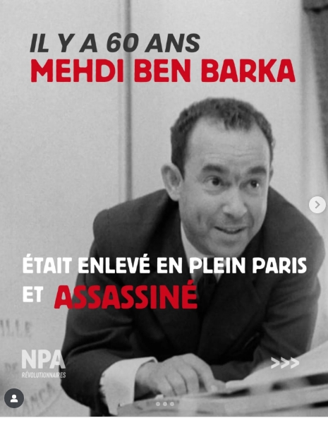Le 29 octobre 1965, Mehdi Ben Barka se rendait à la brasserie Lip, boulevard Saint-Germain, pour un rendez-vous. C’est alors qu’il fut abordé par deux policiers en civil qui le prièrent de monter dans leur voiture. Ce qu’il fit. Et il disparut à jamais. Ben Barka, était un opposant farouche au roi du Maroc, Hassan II, et une figure emblématique du mouvement anticolonialiste international. Son enlèvement, décidé par le souverain marocain, eut lieu avec la complicité de policiers français. Emmené dans une maison de la banlieue parisienne Ben Bark y fut torturé et mis à mort, sans doute sur ordre de Mohammed Oufkir, ministre de l’Intérieur du régime chérifien. Soixante ans plus tard le mystère de sa mort n’a jamais été élucidé même si des enquêtes, notamment de journalistes, ont mis en évidence dans cette affaire les liens entre barbouzes et services secrets français d’une part, la monarchie et l’appareil d’État du Maroc de l’autre. Mais de De Gaulle à Macron en passant par tous les autres présidents de la République qui se sont succédé, de droite comme de gauche, tous ont opposé le fameux « secret défense » aux juges chargés d’enquêter. La justice attendra encore quelques décennies.