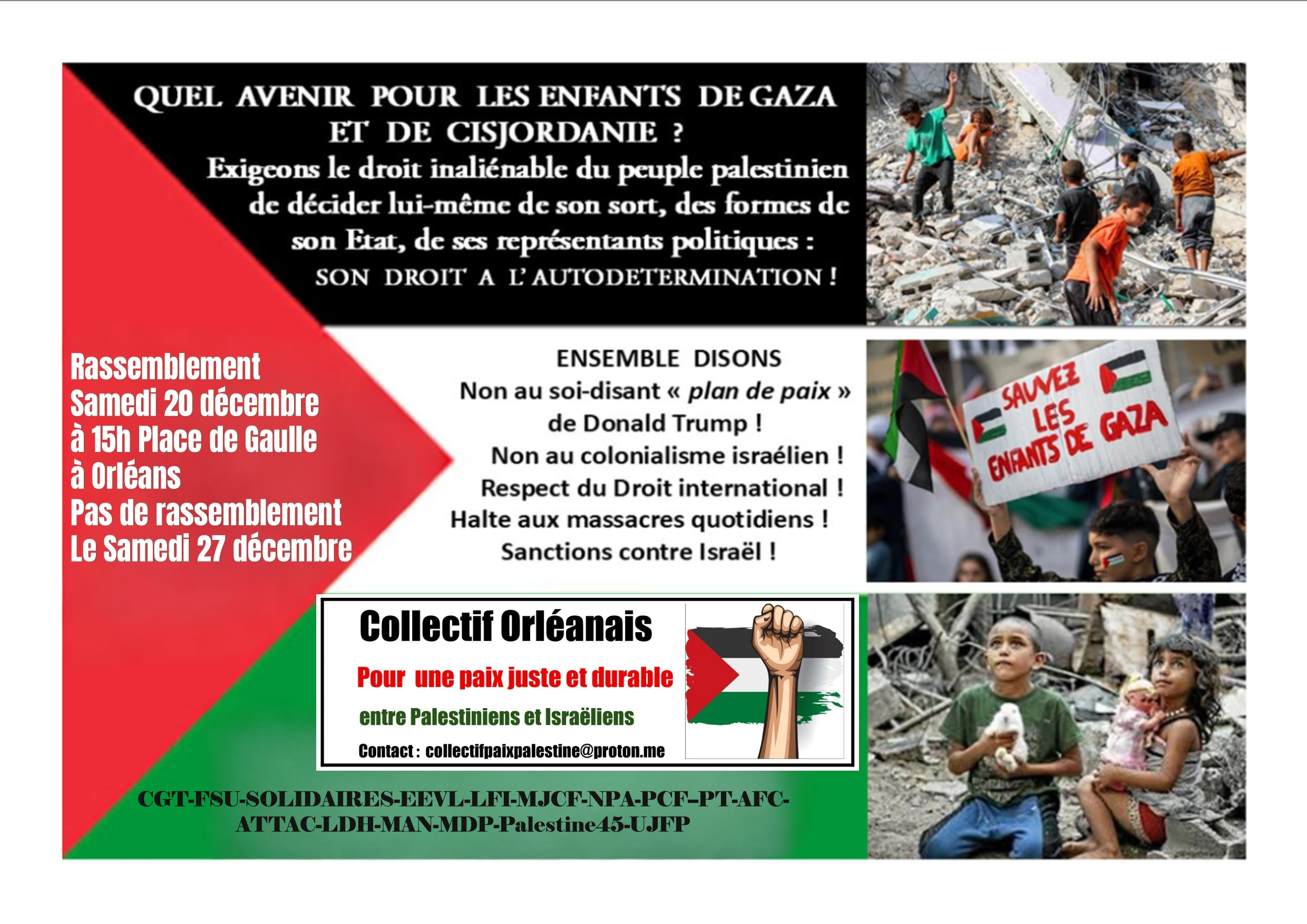 Nous avons besoin de vous. Nous organisons ce samedi à Orléans une manifestation à 15 H Place de Gaulle. Comme à Berlin et dans plusieurs autres villes, nous devons etre nombreux-ses, en famille, avec nos enfants, y compris dans cette période de fêtes qui s’ouvre.