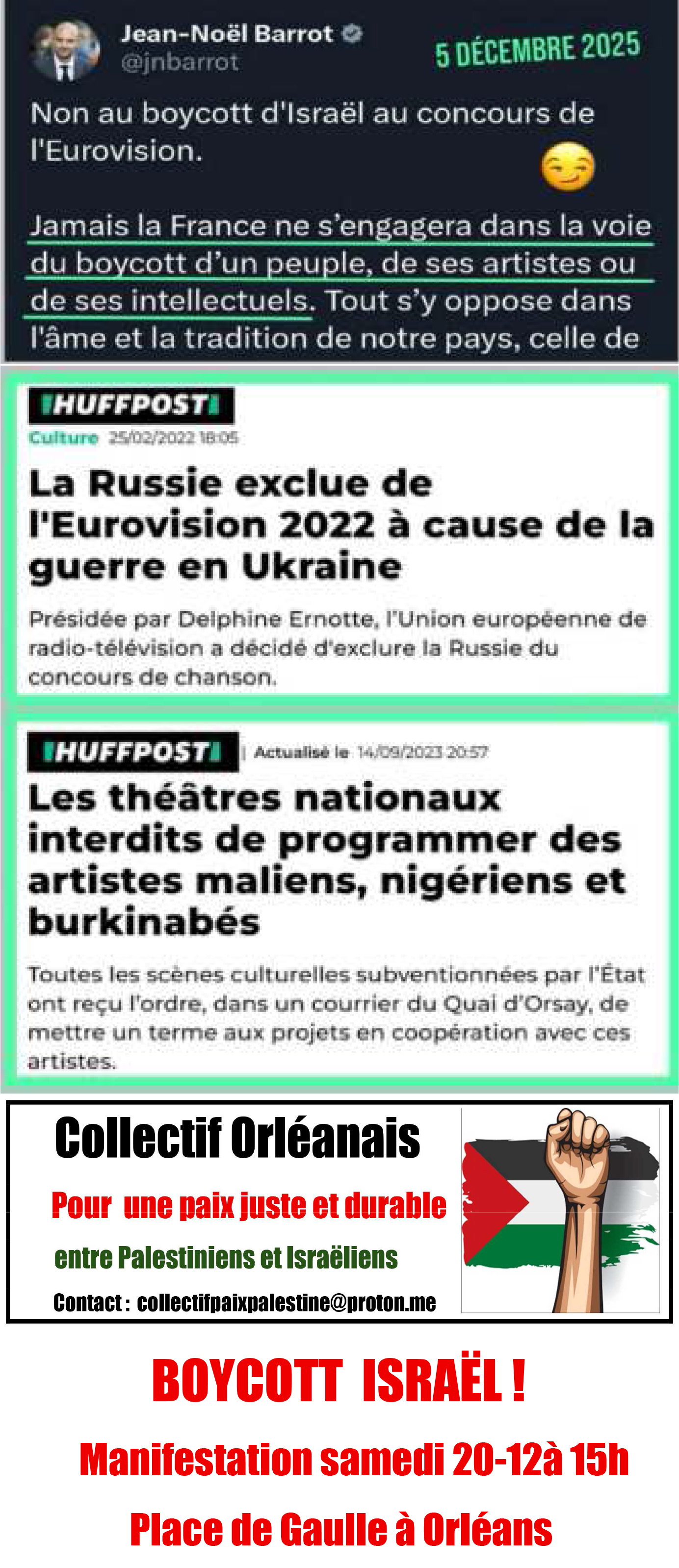 Et pendant ce temps, Macron milite, et s’en vante, pour la présence d’Israël à l’Eurovision, boycottée par un nombre croissant de pays et d’artistes.