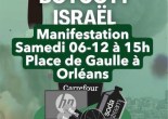 MANIFESTONS BOYCOTT ISRAËL, SOLIDARITE PALESTINE SAMEDI 06 décembre, 15h Place de Gaulle à Orléans !